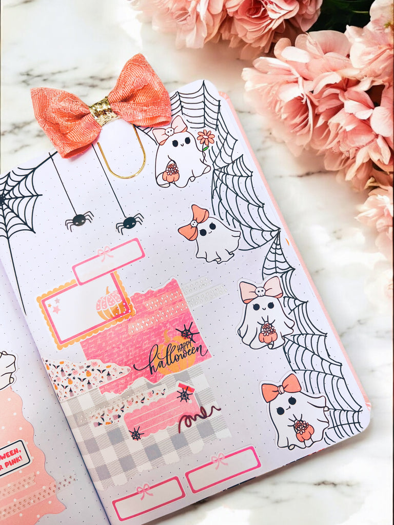 On Halloween, we wear pink! Make Halloween spooky yet sweet with our Cute Little Spooks Halloween Bullet Journal Sticker Kit! Get all your planning done in a fun and creative way this season with these pastel-themed stickers. We combined shades of pink and orange to create a soft but feminine spooky atmosphere for your bullet journals and planners. This six-page kit features pumpkins, ghosts, skulls, candy, spiders and webs, witches' cauldrons and more! Show off your creative side while maintaining that happy Halloween vibe. Start planning the perfect October planner spread today with Cute Little Spooks!