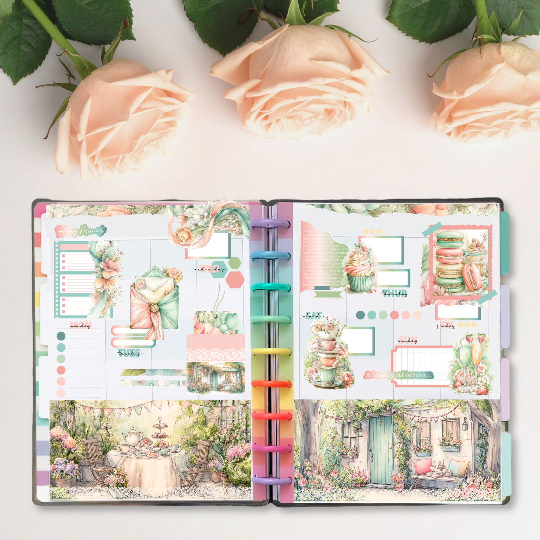 High Tea in Bloom is perfect for spring and summer spreads, but its soft colour palette and timeless details make it a beautiful choice year-round. It’s a kit made for slowing down, savouring the moment, and letting your planner or journal feel like a place you want to linger.