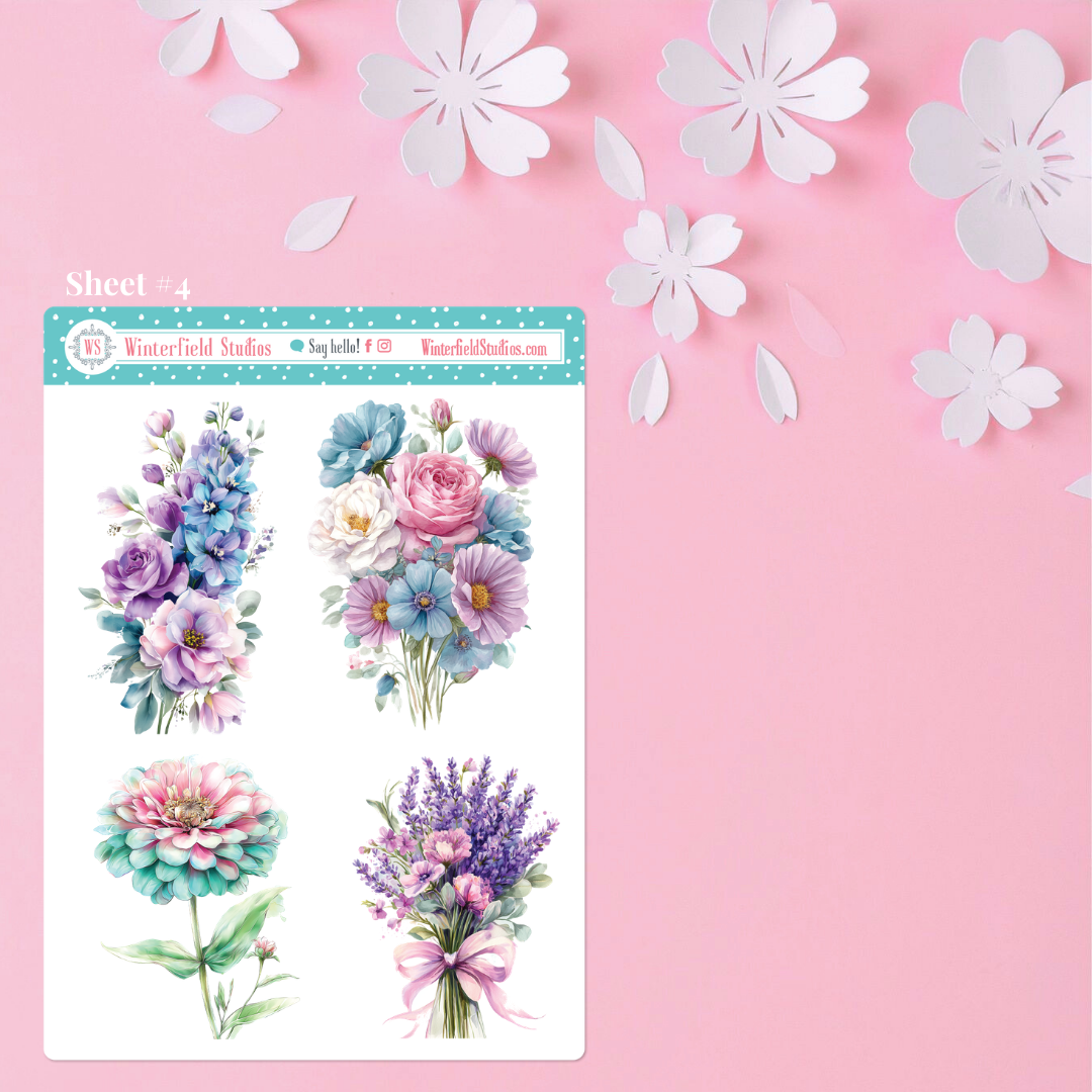 Airy Watercolour Floral Planner Stickers in Aqua, Blush & Lavender