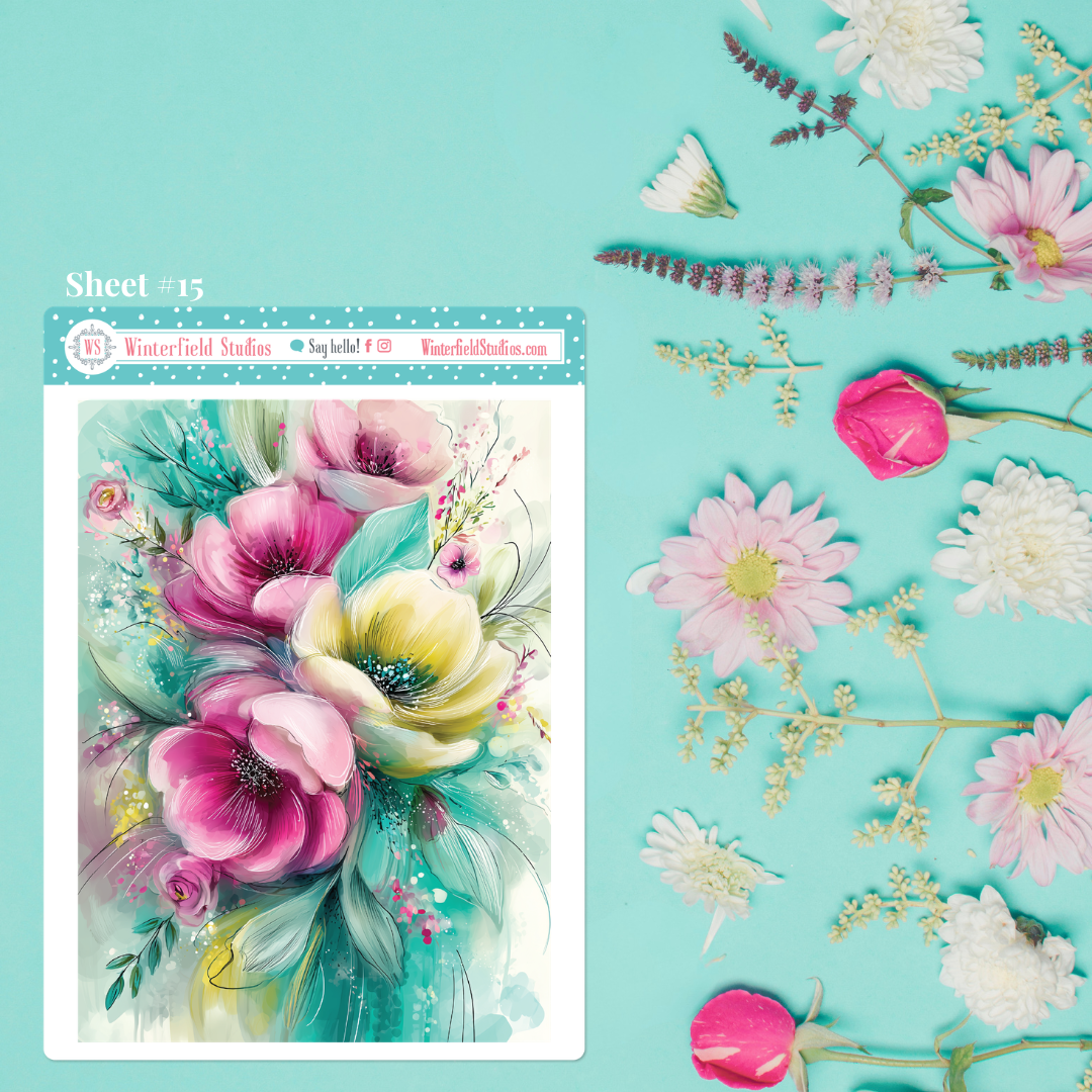 If you’re looking for spring planner stickers that feel artistic, vibrant, and layered while still supporting your weekly planning and journaling routine, Spring Atmosphere brings together dreamy spring scenes, painterly florals, and soft pastel colour in a way that feels fresh, uplifting, and beautifully coordinated from page to page.