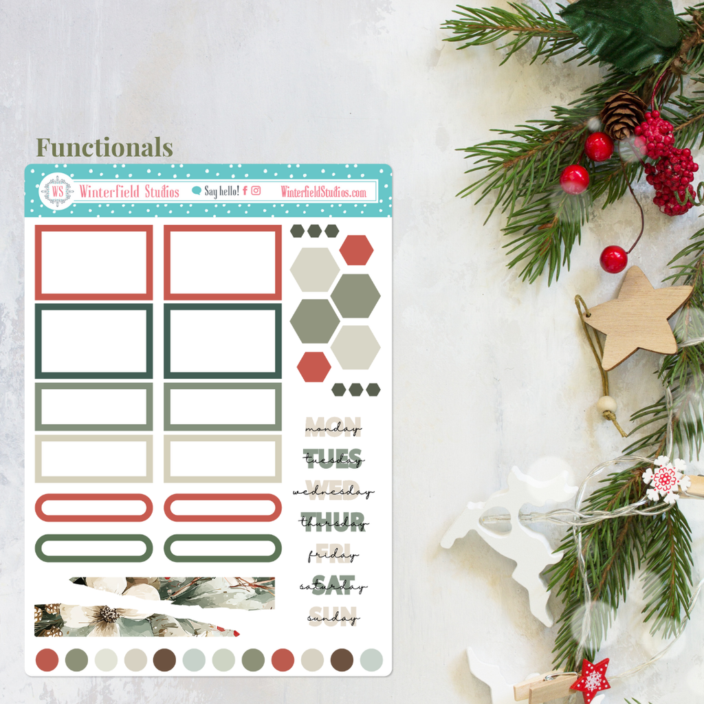 ✨ The kit includes detailed illustrations of Santa’s workshop shelves, rustic garlands, wreaths, wrapped gifts, and glowing lanterns—all perfect for layering. Pair them with the included functional pieces like boxes, labels, and headers to track your to-do lists, holiday menus, or shopping plans while keeping everything beautifully festive.