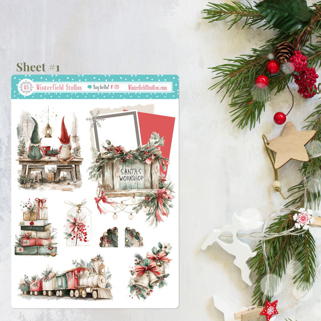 Santa's Little Workshop Holiday Bullet Journal Sticker Kit