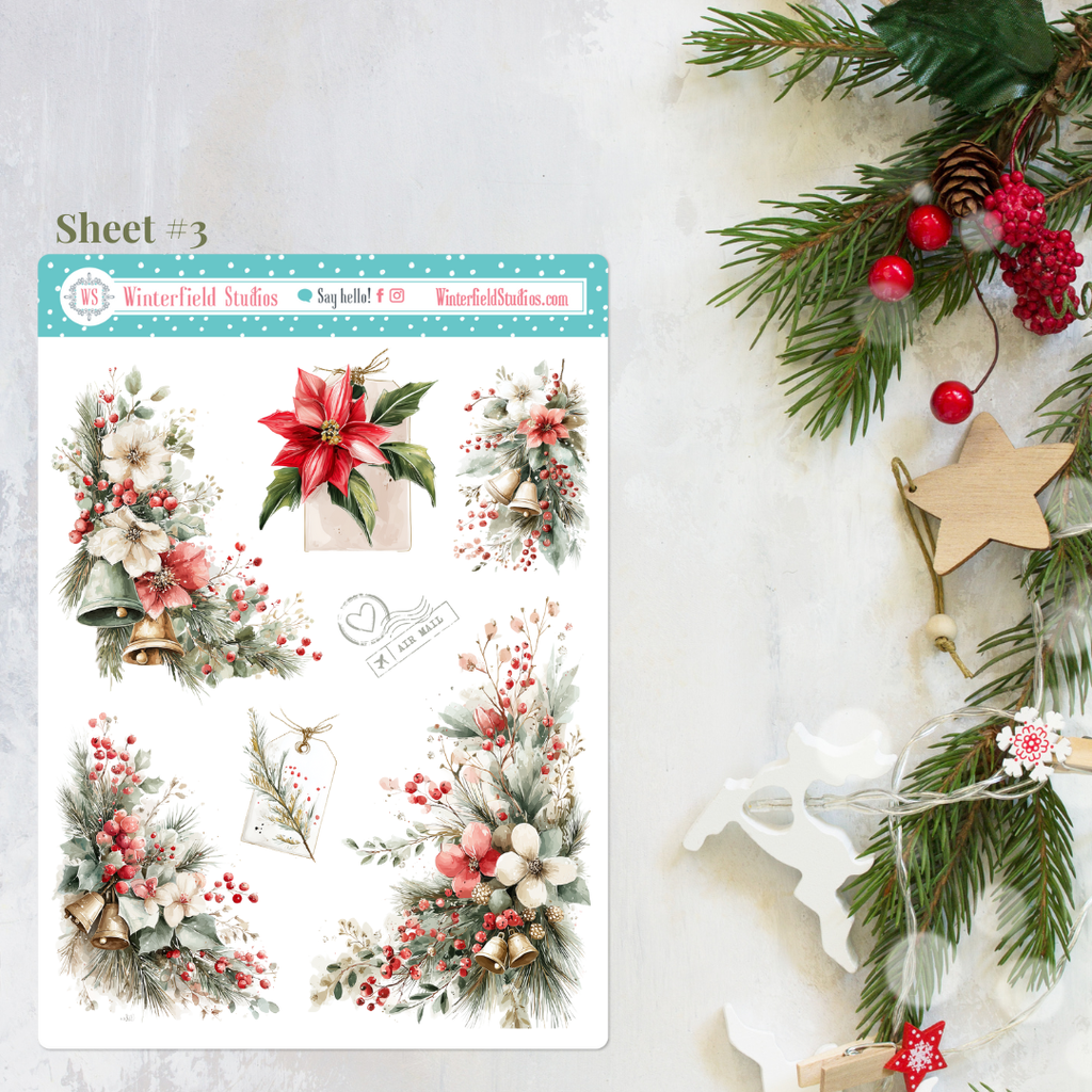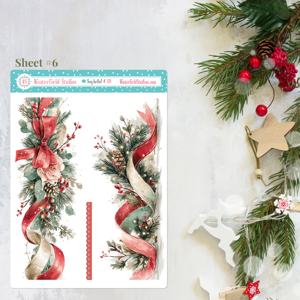 🌟 The watercolour artistry brings every element to life, from frosted trees and pine boughs dusted with snow to delicate poinsettias, ribbons, and golden bells. These details make each spread feel elegant and full of holiday magic, whether you’re journaling gratitude lists, planning family gatherings, or memory keeping your favourite seasonal traditions.