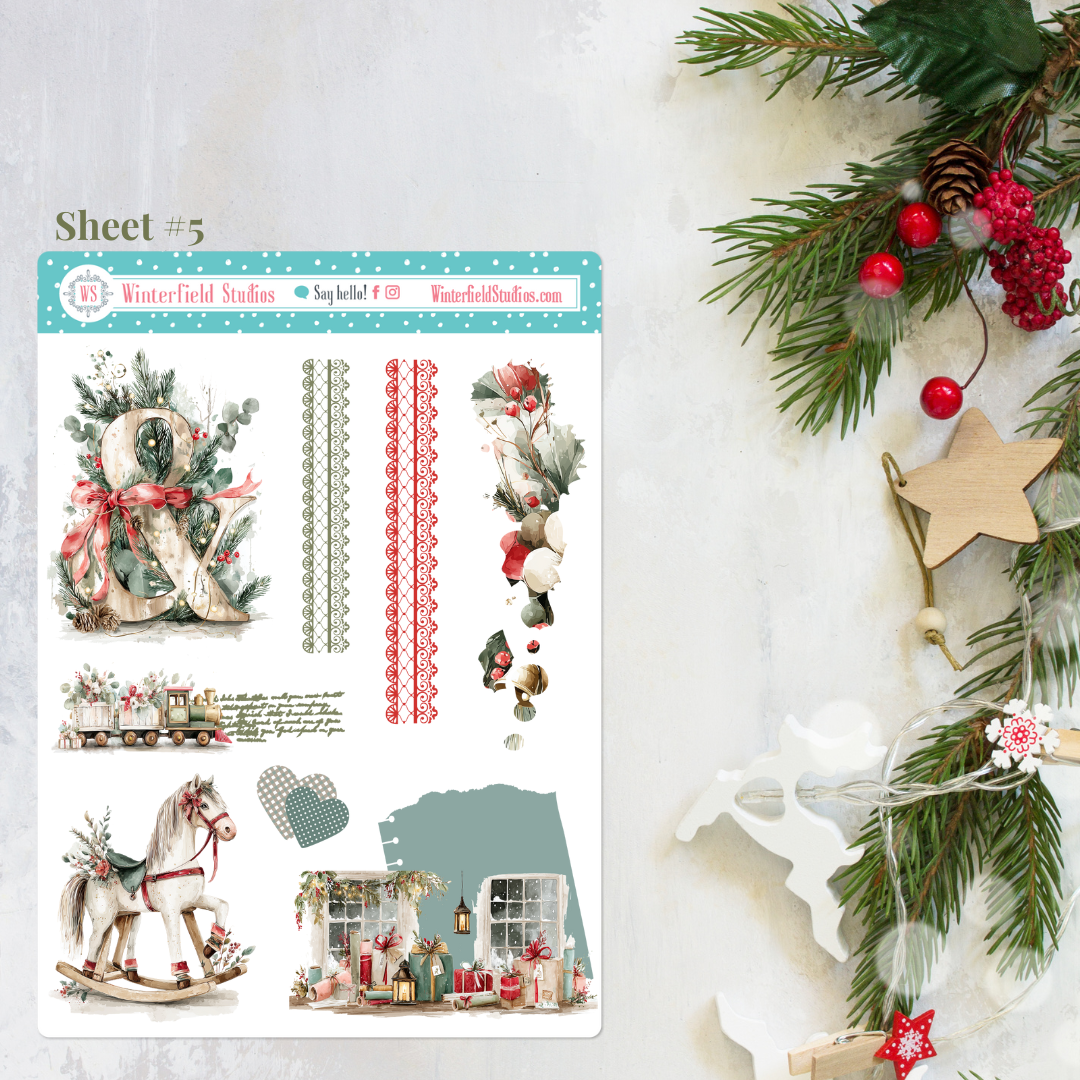 🧸 From teddy bears tied with bright ribbons to rocking horses, toy trains, and beautifully decorated Christmas trees, these stickers turn your planner or journal into a storybook of holiday cheer. Use them to decorate weekly spreads, create December memory pages, or craft your own scrapbook layouts filled with seasonal spirit.