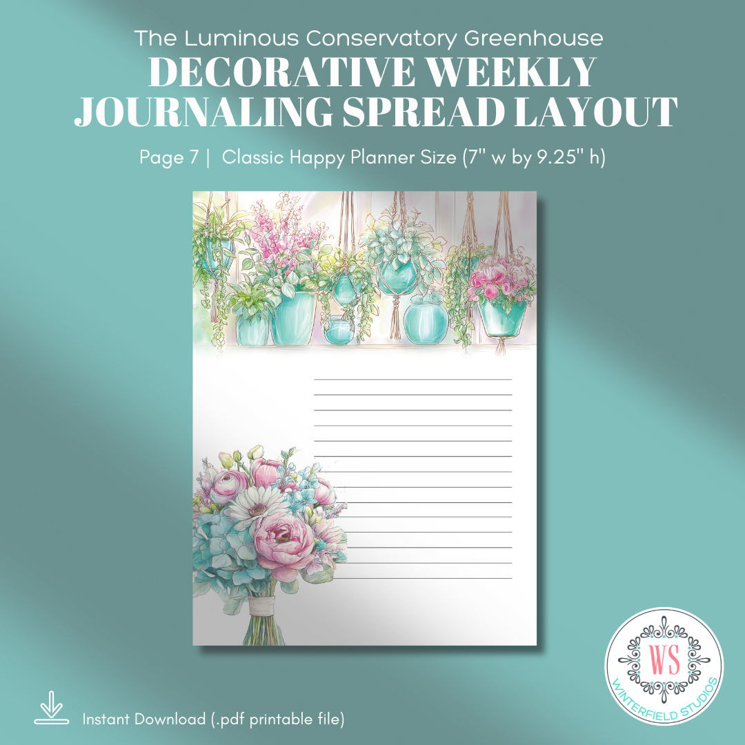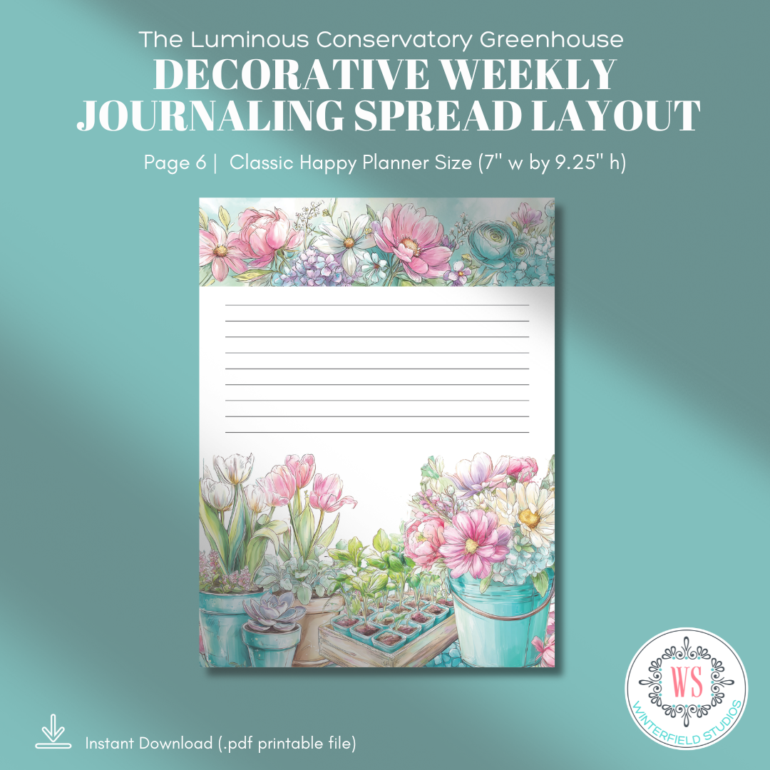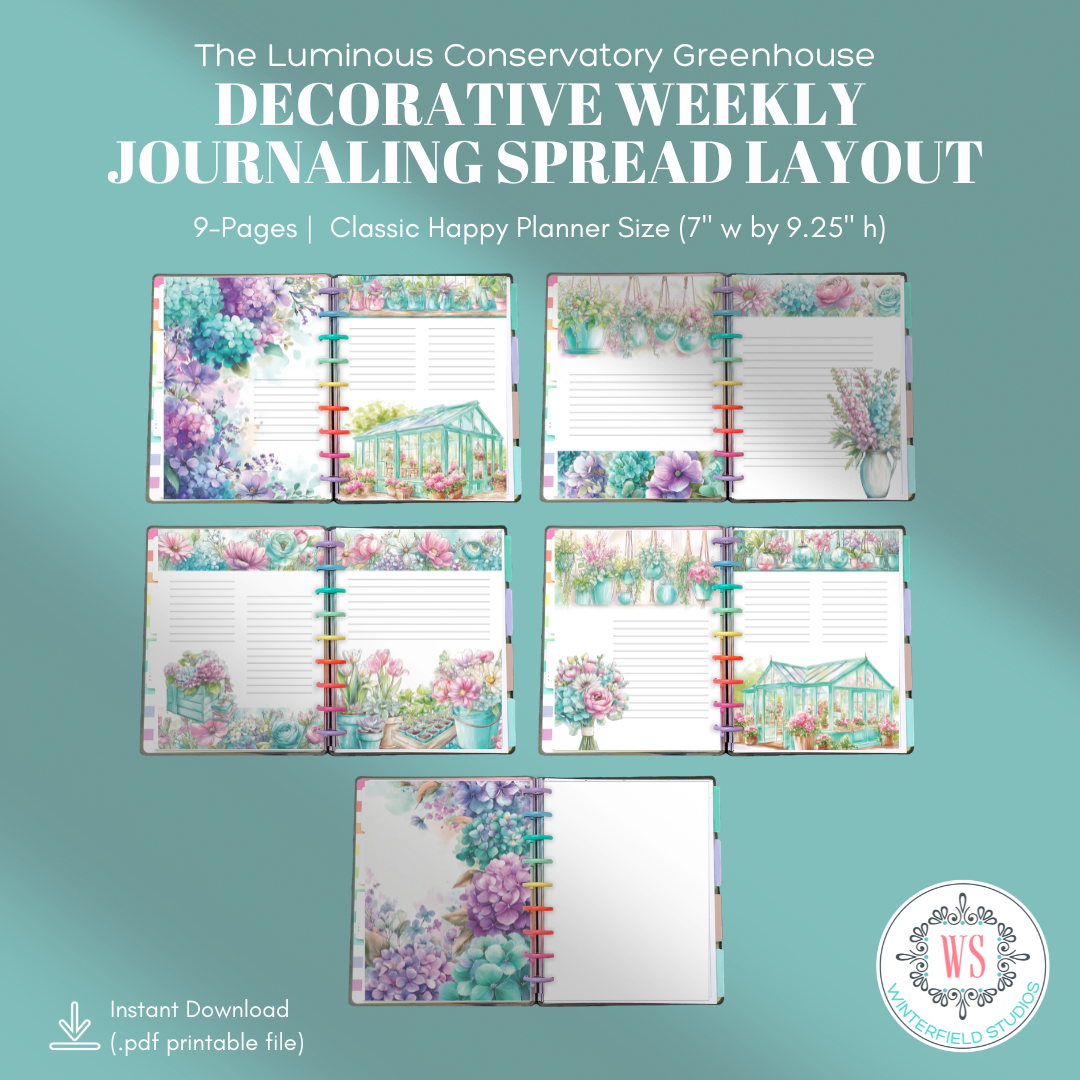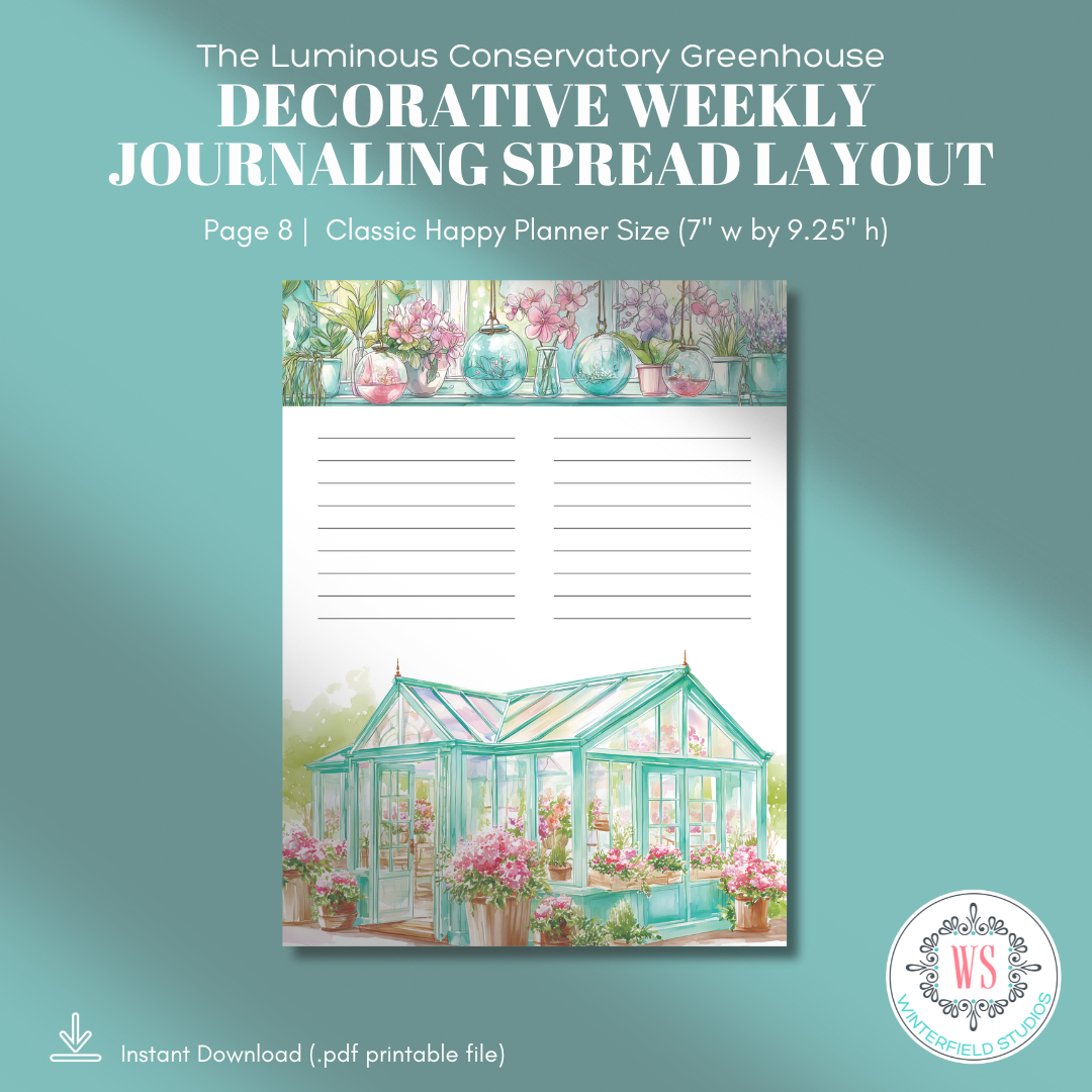 If you love botanical planner printables, floral journaling pages, greenhouse aesthetics, and decorative weekly spreads that feel light and artistic, The Luminous Conservatory Greenhouse will bring that fresh, sunlit energy to your planning routine.