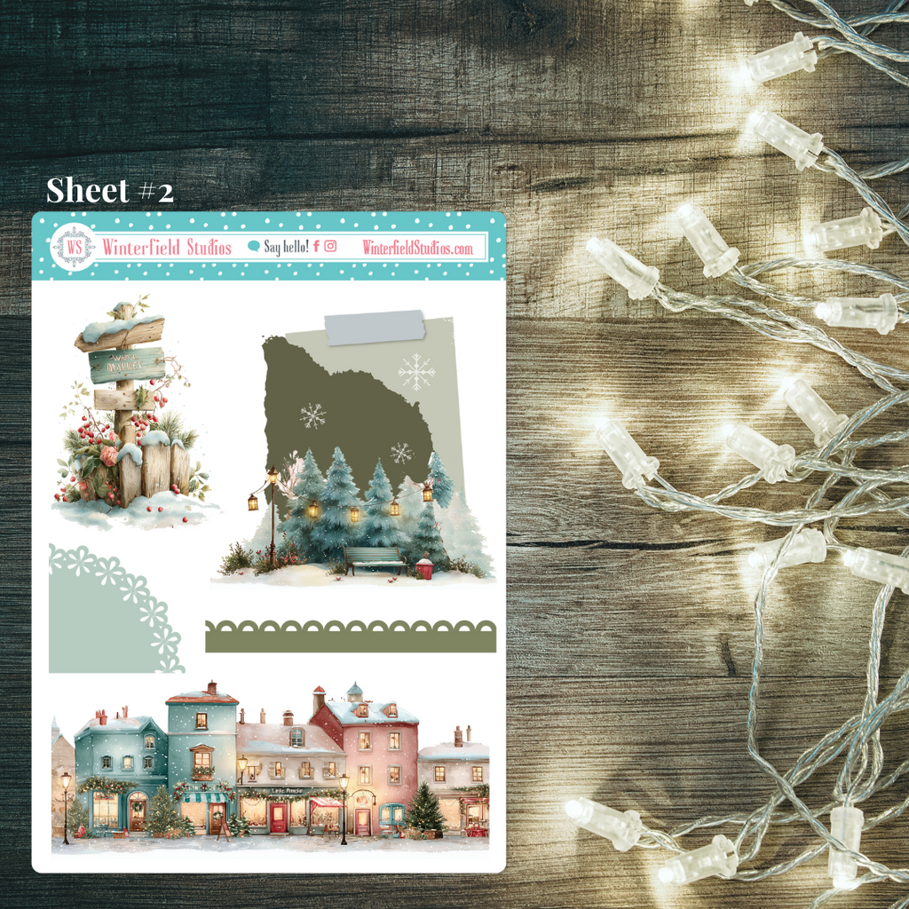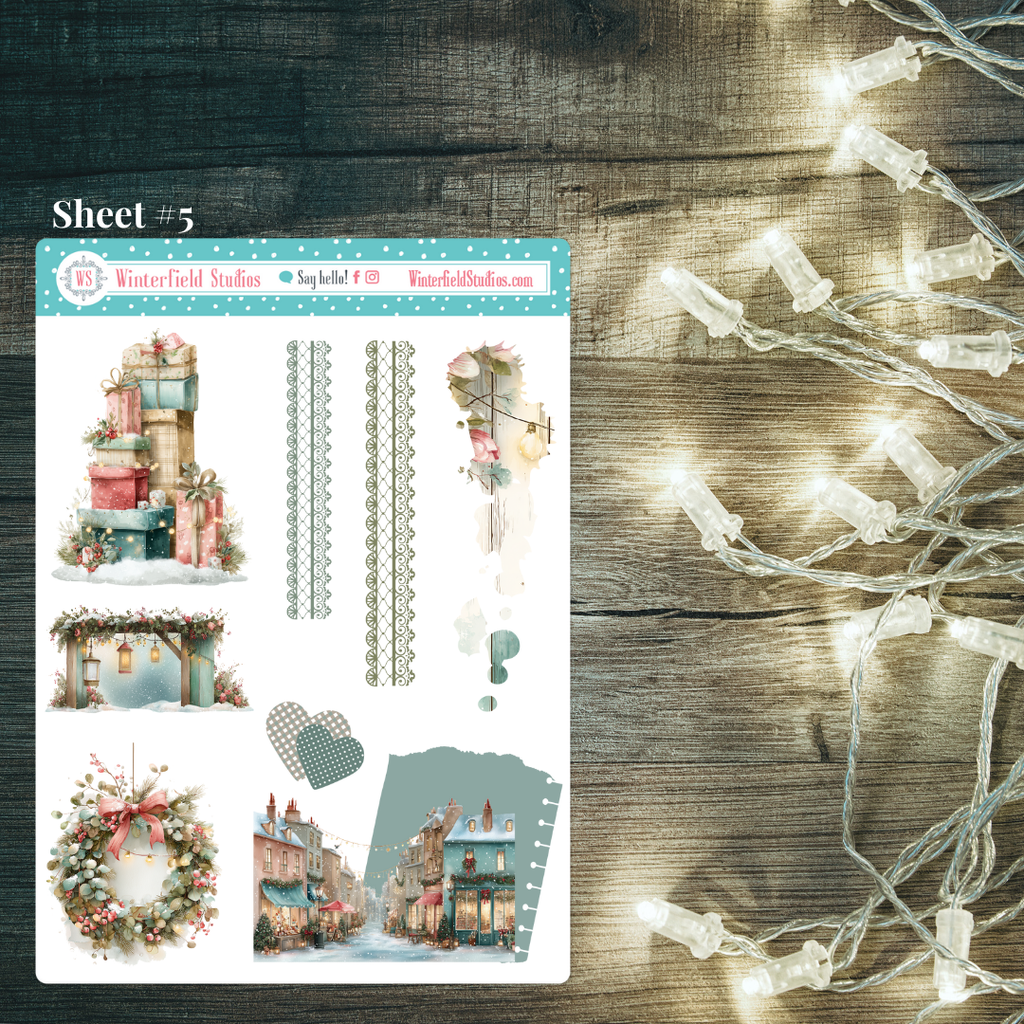 🎄 Step into the magic of the holidays with the Winter Market Stroll Sticker Kit. This 11–sheet collection captures the joy of Christmas holiday markets, snowy strolls, and cozy winter nights. With everything from festive shops and decorated streets to mugs of cocoa, gifts, and twinkling lights, this kit makes your planner spreads feel like a holiday storybook.